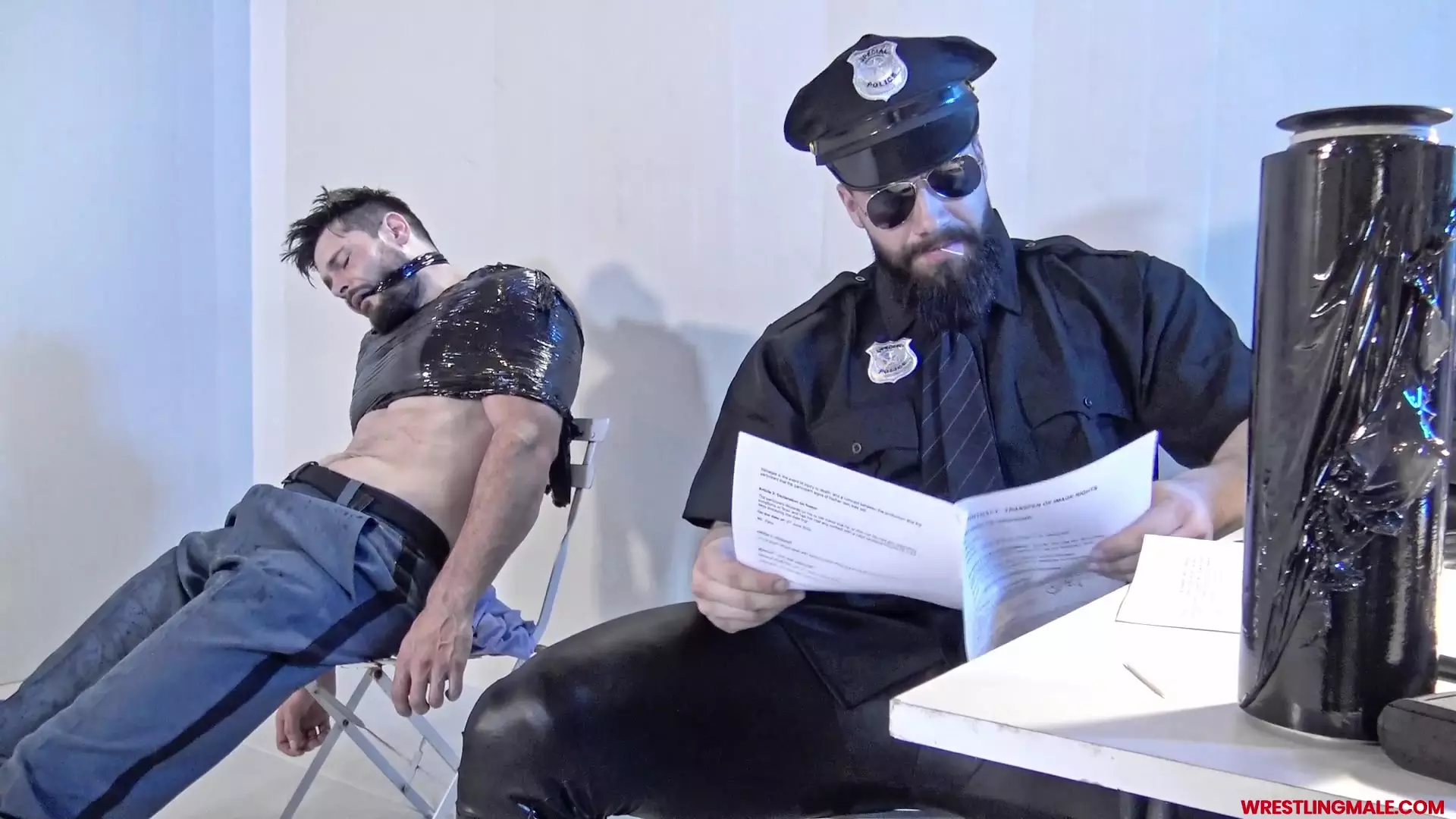 Here is one more perfect fetish scene for those addicted to boots, leather, cop uniforms and rough chokes out, abs bash and ball bashing which make the fight so unique and nasty until cop Frank is fully humiliated by the hierarchy and tied…