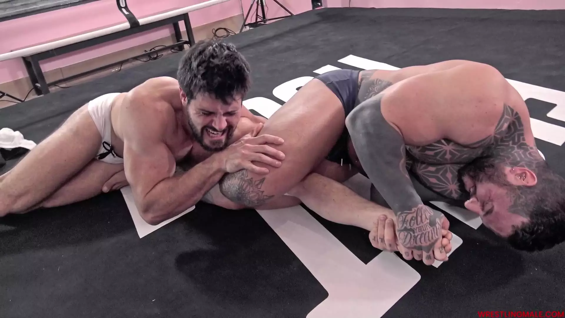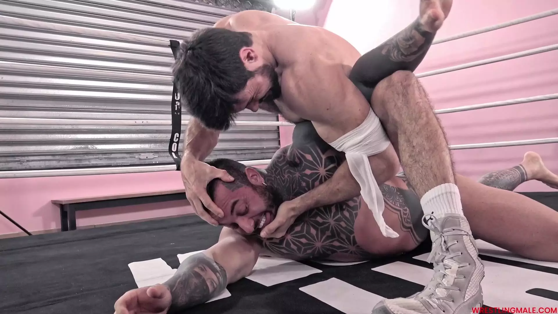 Après un bref échange de provocations, Muscle Beast décide d’attaquer rapidement pour surprendre Matteo. Notre haltérophile prend immédiatement le dessus sur le culturiste tatoué avec une série brutale d’étirements, de back breakers et de lifts…
